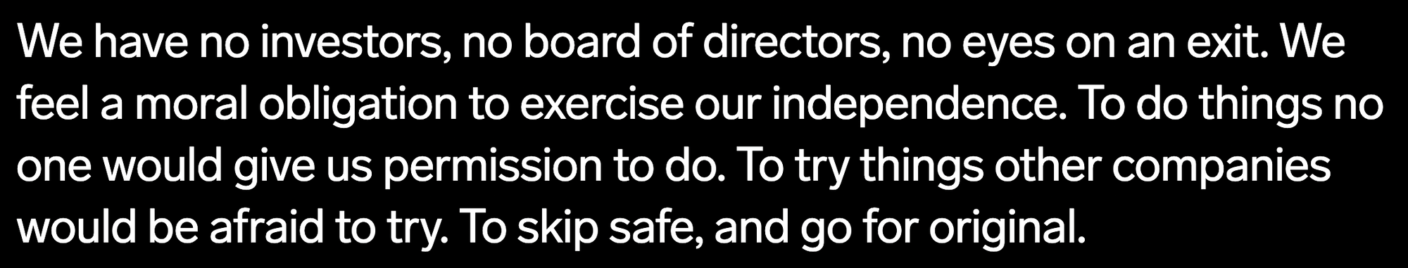 So why should you care? Not for their software but rather because they defined the playbook for small-giant companies. Their new minimalist website recaps their key principles through a quite extensive manifesto.