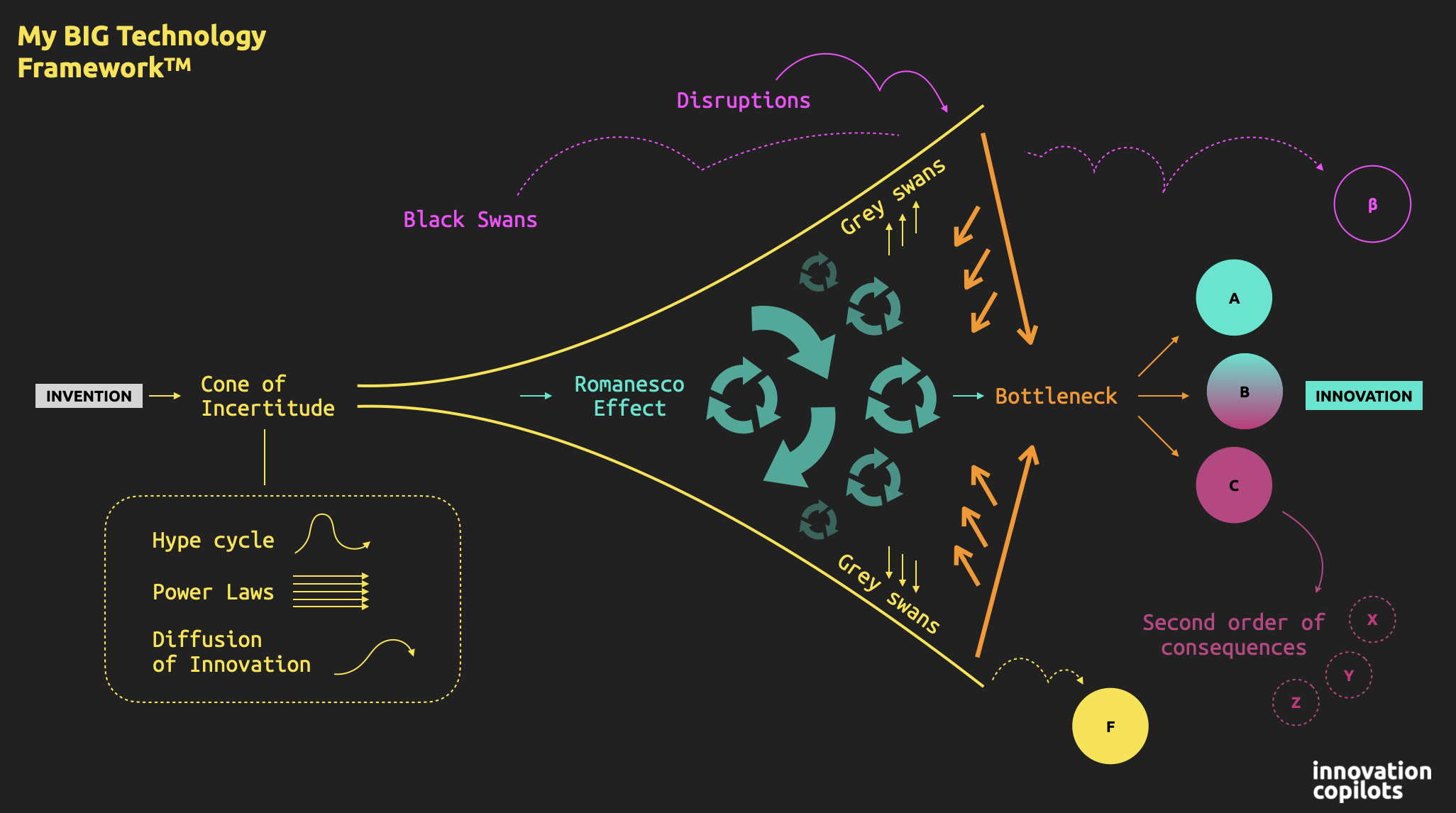 This is one of the reasons I've started to properly think and build my own "BIG Technology Framework" to try to make sense of the whole cycle, starting with science or pure technology (invention) and eventually leading to a stable business and societal transformation (invention):