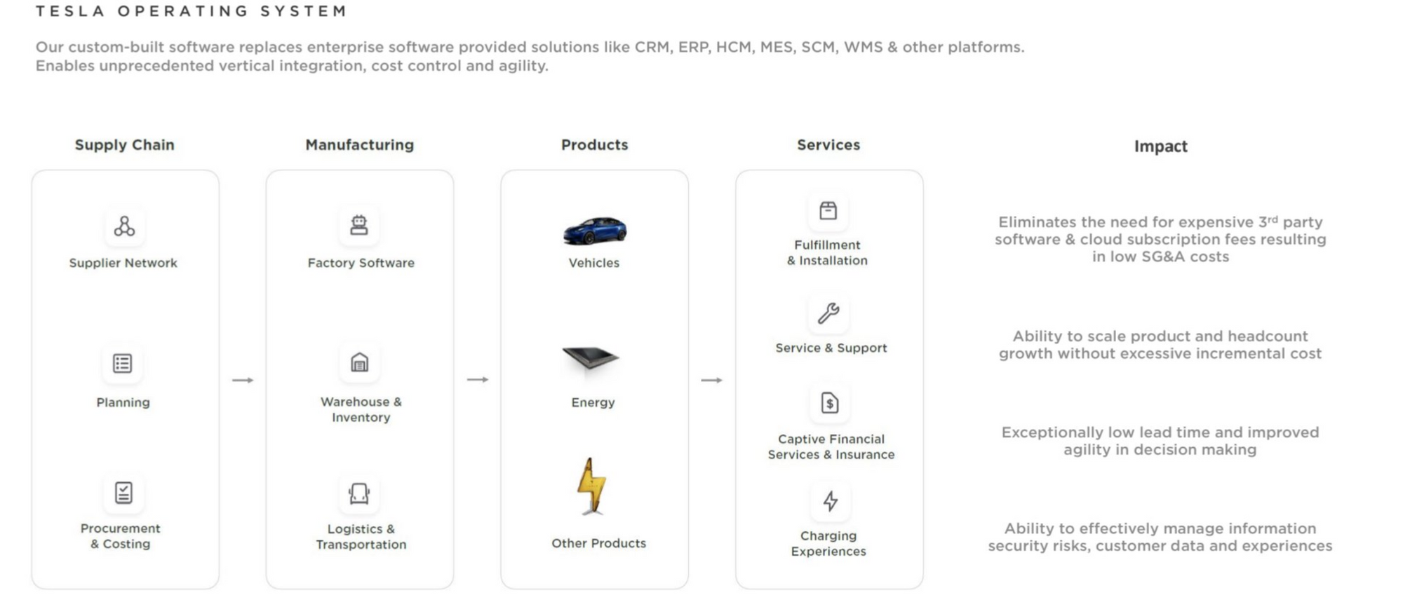 The irony, of course, is that traditional car companies mostly saw software as hidden and deeply technical security features with a layer of an entertainment system. And they are still mostly happy to let others care for the latter. Meanwhile, beyond, the software aspect, Tesla doesn't even think of itself so much as a car company but rather as a full-on operating system for electric mobility: