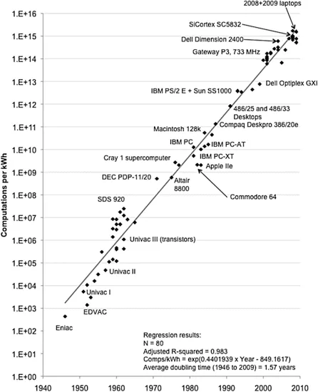 La puce A5 amène de son côté deux atouts clefs : (1) de meilleurs graphiques pour ce qui est devenu une console de jeu mobile à part entière et (2) une utilisation de la batterie encore améliorée alors que la puissance de calcul augmente. Les échecs de la Nintendo 3DS et de la Sony Vita montrent bien qu’ici aussi un marché est en train d’être phagocyté par le mobile. La batterie est quand elle un enjeu industriel un peu passé sous silence pour le grand public, mais qui est un champ de compétition féroce. Vous allez inévitablement entendre de plus en plus parler de la loi de Koomey qui devient tout aussi importante que la loi de Moore : “Pour une tâche informatique donnée, la consommation électrique utilisée est divisée par deux tous les deux ans et demi”.
