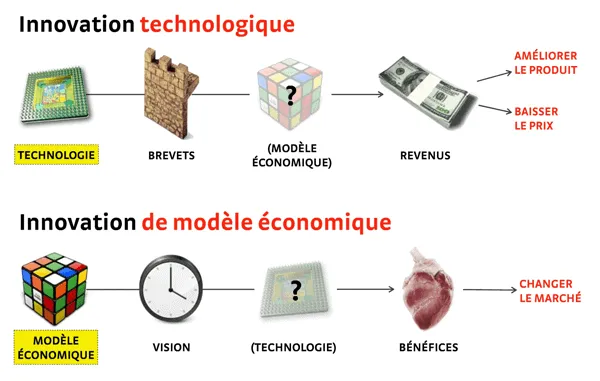 En version plus longue, une partie de cours d’innovation de business model pour le MBA d’Euromed Management (c’est une version maintenant ancienne, mais qui peut donner des idées précises sur certains outils). Et une autre partie avec 11 stratégies d’innovation de business models : la longue traîne, utiliser la carte, devenir grassroots, arriver après la course, devenir une némésis, globaliser, dématérialiser, changer la granularité, rendre gratuit, faire participer la foule et Retrouver son coeur.