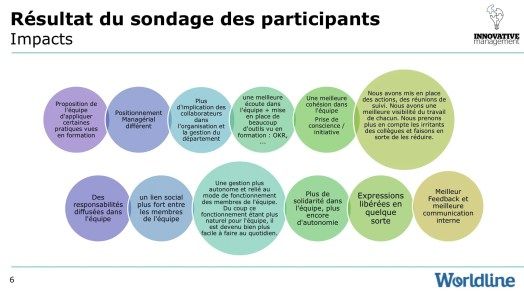 Another chief of department was amazed how quickly behaviors were changing with some team members: going from passive and reserved to assertively asking about a project and taking initiatives. All thanks to co-dev techniques, peer mentoring, and other little tricks ;o)