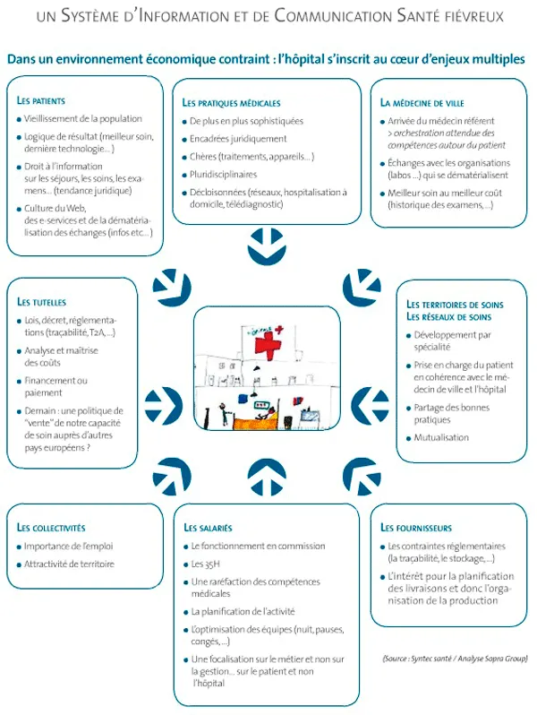 C’est la saison, le printemps voit fleurir les rapports et le Syntec nous fait bénéficier d’un livre blanc sur l’hôpital numérique. Après avoir travaillé plus de dix ans dans le secteur pharmaceutique et médical, j’avoue regarder avec toujours beaucoup de curiosité ce qu’il se passe dans ce secteur. Mais c’est surtout un marché qui me sert à évaluer l’intérêt de n’importe qu’elle technologie. En effet le marché hospitalier est très ouvert en terme de besoins : quel que soit votre domaine d’activité, l’hôpital en a besoin (informatique, formation, management, logistique, télécommunications, restauration, nettoyage, sécurité, …). Si vous parvenez à y entrer il est doté de budgets très conséquents, et détail toujours important, il n’est pas soumis à des saisonnalités ou des crises ! Par contre c’est un marché hautement complexe qui met durement à l’épreuve toutes les technologies :