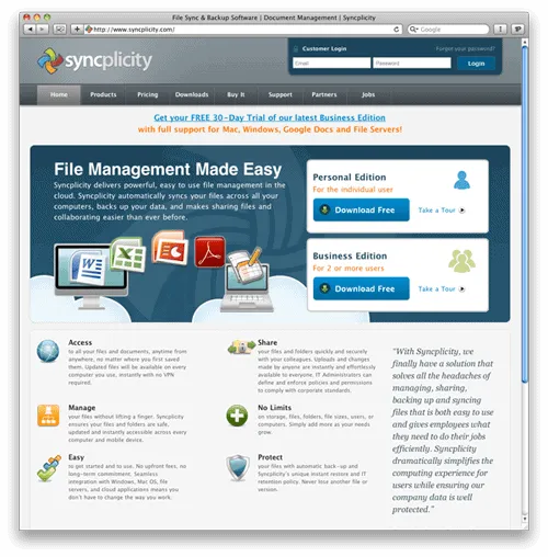 Et celui de deux de ses concurrents très connus (Syncplicity et Sugarsync) :
