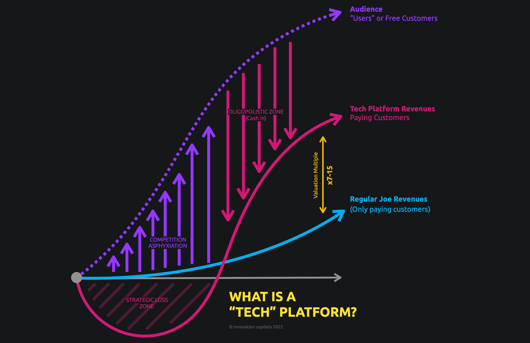 The reasons why U.S. "tech" companies are mostly social platforms? It's what can potentially scale the fastest with powerful network effects and next to zero cost of goods sold beyond some IT and (yes) tons of marketing. In this game, there is no room to get into clinical trials or deeptech. Cancer or climate change don't have sexy valuation multiples.