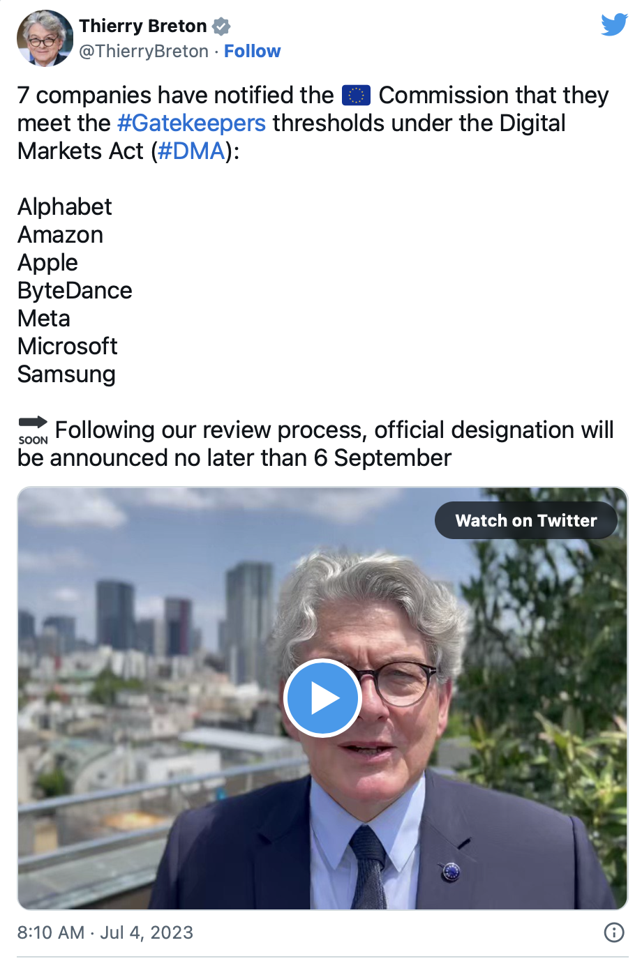 And by the way, Thierry Breton dotting the i's and crossing the t's on Twitter of all the other media possible is epic-level trolling. Respect. 🫡